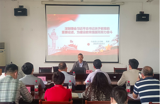 学院党委副书记王玉伟、副院长彭虎、学生管理科副科长刘欣、计算机科学教研室主任董西伟等四位同志先后谈了学习习近平总书记关于教育的重要论述的心得体会。