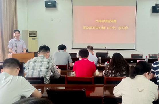 5月18日下午,计算机学院在文友楼424会议室召开党委理论学习中心组(扩大)学习会,专题学习习近平总书记关于教育的重要论述。马克思主义学院黄群副教授受邀作专题辅导报告,学院党委理论学习中心组成员、各科室负责人、各党支部书记参加了会议,理学院、电子信息工程学院、材料科学与工程学院、建筑工程与规划学院四个兄弟学院的组织员列席旁听。会议由党委书记袁宜如同志主持。