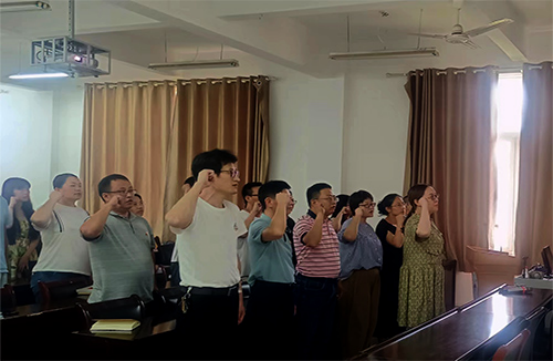 随后,支部党员一起重温入党誓词。通过宣誓,教育党员时刻牢记入党誓言,自觉遵守党的章程,终身践行入党誓词。