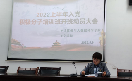 2022年5月9日,yL23411永利集团党委分党校和文学与传媒学院党委分党校于文友楼424共同举办2022年上半年入党积极分子培训班开班动员大会,计算机学院专职组织员周波老师和文传学院专职组织员余蓓老师做动员报告,yL23411永利集团和文学与传媒学院本期所有入党积极分子参加。