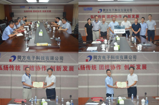 会上,彭虎副院长和徐保根总经理共同签署了研究生实践教学基地协议签署并挂牌,并向同方电子科技有限公司高级工程师杨民、陈向明、彭志华等三人颁发客座教授聘书。