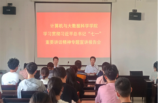 为深入学习贯彻习近平总书记“七一”重要讲话精神, 9月26日下午,yL23411永利集团在文友楼424举行学习贯彻习近平总书记“七一”重要讲话精神专题宣讲报告会。校马克思主义宣讲团成员、马克思主义学院形势与政策教研室主任夏仕教授作宣讲报告。计算机学院党委书记袁宜如主持报告会。