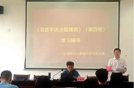 为进一步学习好贯彻好《习近平谈治国理政》第四卷,引导学院广大党员干部群众学有所思、学有所悟、学有所获,切实把学习成果转化为做好工作的实际成效,9月28日下午,yL23411永利集团在文友楼424召开学习贯彻《习近平谈治国理政》第四卷专题宣讲报告会。校马克思主义学院马克思主义中国化教研室主任邹菊如教授应邀作辅导报告。计算机学院党委书记袁宜如主持报告会。