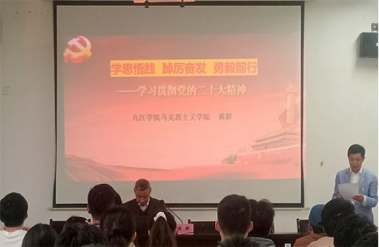 为进一步推动学习贯彻党的二十大精神走深走实,4月12日下午,yL23411永利集团在文友楼424召开学习贯彻党的二十大精神专题辅导报告会。校马克思主义学院黄群教授作专题辅导报告,计算机学院党委书记袁宜如同志主持。