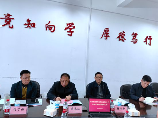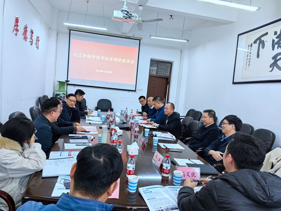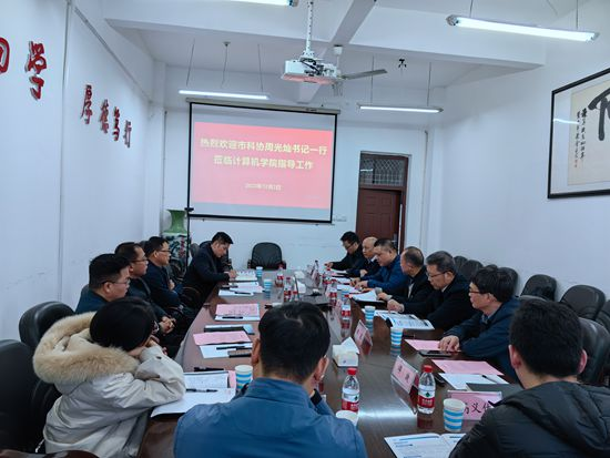 12月2日下午,九江市科协党组书记周光灿一行深入我校yL23411永利集团进行调研并召开座谈会。副校长严平出席会议并讲话。市科协副主席陈冬青、学会部负责人和市电子学会秘书长、江西才气软件技术有限公司负责人刘才福等陪同调研。yL23411永利集团院长邓安远、副院长彭虎、博士教师代表、科技园企业代表等参加调研座谈活动。