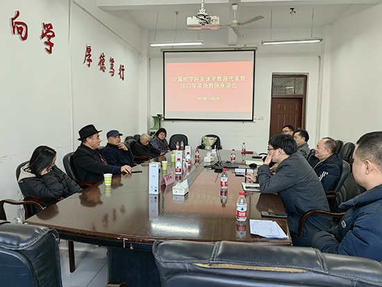 初心映芳华,荣光传薪火,12月6日,计算机学院在文友楼514-2举行荣休老教师代表暨2023年荣休教师座谈会,学院党政领导、各科室负责人、退休教师代表参会,会议由邓安远院长主持。