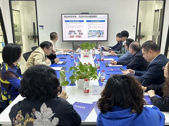 双方围绕人工智能与大模型的相关微专业设置、课程建设、实训实践基地、师资培训、学科专业竞赛、学生实习就业等方面进行了深入交流和洽谈。会上,我校一行在飞浆中心相关负责人的详细介绍和展示下,进一步了解了百度飞浆的教学资源及管理平台情况、人工智能学习与实训社区运营情况、飞浆与大模型赛道设置情况以及百度飞桨的技术实力和应用场景情况。