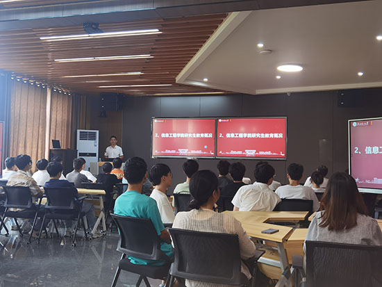 会上,许春冬副院长首先代表江西理工大学信息工程学院向同学们详细介绍了江西理工大学及信息工程学院的办学历史、师资力量、科研平台、学科优势以及研究生教育的特色与成绩。他强调,江西理工大学信息工程学院注重理论与实践相结合,致力于培养学生的创新思维和实践能力,为学生搭建多元化的成长平台。同时,他还分享了近年来学院毕业生在科研、就业等方面的亮眼成绩,进一步增强了同学们对报考江西理工大学研究生的信心。
