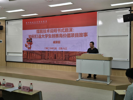 戚主任的讲解深入浅出、生动幽默,他以“摆脱技术说明书式路演:如何打造大学生创赛高价值项目故事”为主题,告诉同学们怎样作一个让评委愿意看的网评PPT,如何讲一个让评委愿意听的路演故事,他用一个题为“踢出她未来”的国金项目告诉同学们创新创业不是高不可攀,是要做生活中的有心人,挖掘好的创意,更要做持之以恒的实干家,不能为了比赛而创新,要把好创意落地成好项目。