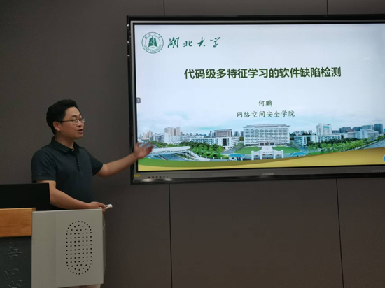 何院长分享了贯穿软件开发生命周期的软件缺陷检测研究成果,利用深度学习算法,从多粒度多模态自动学习软件代码的语义结构特征,弥补了现有软件缺陷预测方法的不足,提高了软件开发的质量。同时,何院长还分享了课题组近年来的研究路线。最后,学院师生与何院长进行了学术上的深度交流。