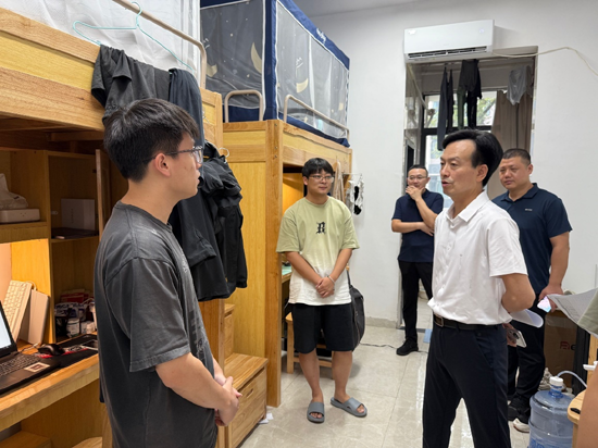 7月7日下午,骄阳似火,yl23411集团党委委员、副校长吴维勇在发展规划与研究生处和计算机学院领导的陪同下走进研究生宿舍,亲切看望学院暑期留校的联培研究生,为他们送去学校的关怀与问候。