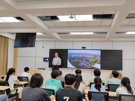 在互动答疑环节,学生就相关课程内容、海外学习生活适应等方面进行了提问和交流。环节最后,“2+2学分互认双学位联合培养项目”的学生表演了“用英语讲好中国故事”的主题演讲,展现了一定程度的跨文化沟通素养。