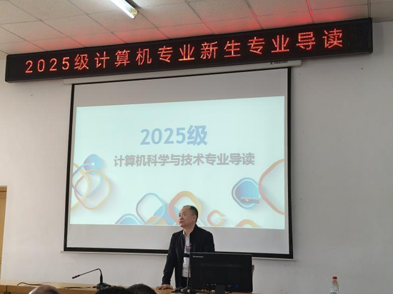 计算机科学教研室主任胡广义依据专业培养方案,向新生详细地介绍了专业的历史沿革、核心课程体系、未来就业方向及发展前景,帮助新生尽快地建立专业认知、明确学习目标、科学规划学业路径,为他们的专业学习奠定了基础。