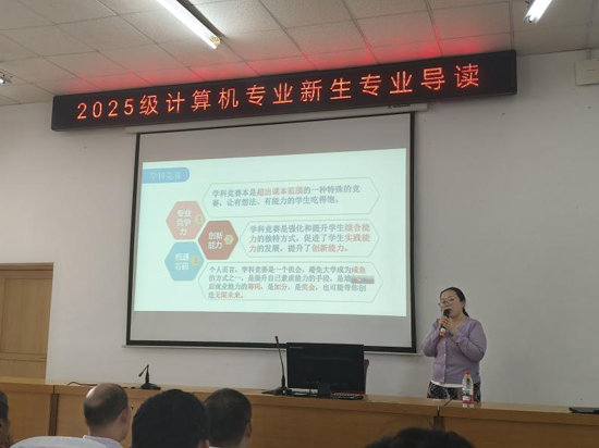 吕慧老师向新生介绍了计算机科学与技术专业的ACM创新训练营的发展、现状及取得的成绩,使新生了解专业实践方向、提升编程兴趣、培养逻辑思维和团队协作能力,为后续专业学习与职业发展指明方向。