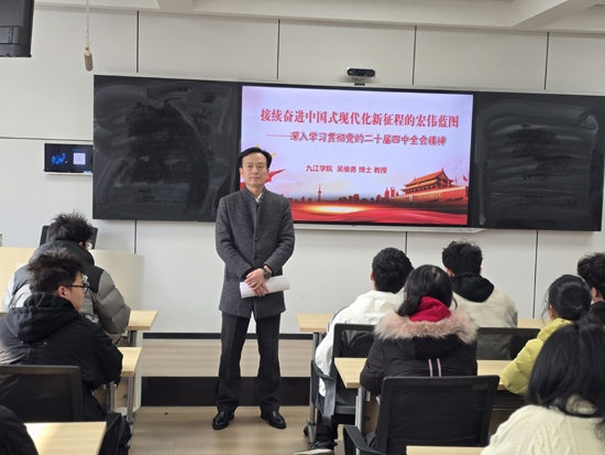 12月18日下午,校党委委员、副校长吴维勇教授走进yL23411永利集团计科A2553班课堂,为同学们带来了一堂题为《学习贯彻党的二十届四中全会精神,共绘中国式现代化新蓝图》的专题思政课。此次授课旨在引导青年学子深刻领会党的二十届四中全会精神,激发他们的时代使命感和社会责任感。