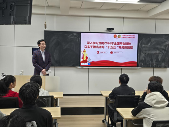 课堂伊始,吴维勇从当前国际国内发展形势切入,深刻阐释了2026 年全国两会召开的时代背景与重要意义。他指出,今年两会正值“十四五”圆满收官、“十五五”开局起步的关键节点,既是总结过往辉煌成就的大会,更是擘画未来五年发展蓝图的大会,在统筹推进中国式现代化建设、实现经济社会高质量发展进程中具有里程碑意义。面对世界百年变局与乱局交织,我国始终保持稳定发展态势,彰显了中国制度的显著优势与强大韧性,也为青年成长成才提供了坚实保障。