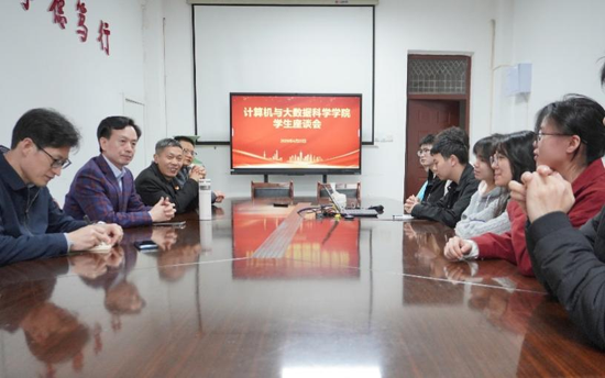 思政课结束后,吴维勇在计算机学院会议室与学生代表开展座谈交流。座谈会上,同学们围绕专业学习、课程设置、校园生活、职业规划等方面踊跃发言,畅谈所思所想。吴维勇认真听取每一位同学的发言,不时记录要点,并针对同学们提出的问题和困惑一一给予耐心解答。他鼓励同学们要坚定专业自信,注重理论与实践相结合,积极参与科研创新和学科竞赛,不断提升综合素质和核心竞争力。同时,他要求学院相关部门对学生反映的问题及时梳理、认真研究,切实为学生成长成才创造良好条件。