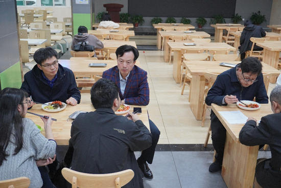 傍晚时分,吴维勇来到学校三食堂,与同学们一起排队打饭,共进晚餐。餐桌上,吴维勇与同学们围坐在一起,从饮食习惯聊到家乡风俗,从校园生活谈到人生理想,气氛轻松愉快。他关切地询问同学们对食堂饭菜质量、价格以及服务方面的意见建议。