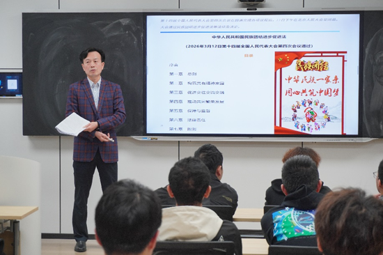 下午,吴维勇来到文友楼301教室,为他所联系的A2461班学生讲授了一堂生动的思政课。课堂上,吴维勇围绕全国两会精神,结合当前国内外形势和青年学生的使命担当,对两会的重要成果、重大意义进行了深入浅出的解读。他勉励同学们要关心国家大事,将个人理想融入国家发展大局,珍惜韶华、刻苦学习,努力成长为堪当民族复兴重任的时代新人。同学们认真聆听,积极互动,课堂氛围热烈融洽。