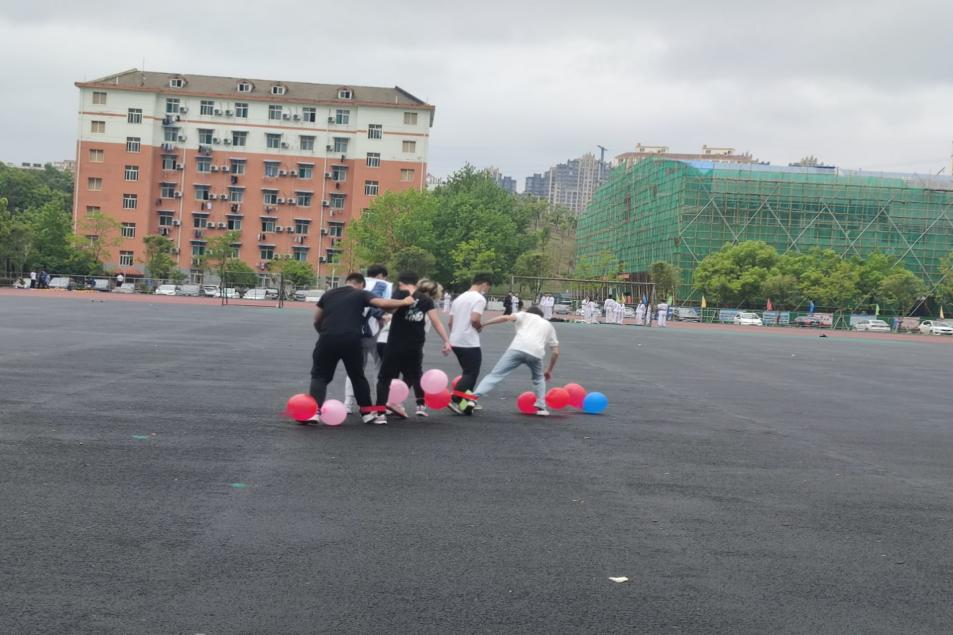 此次活动分为背夹球、萝卜蹲、六人七足、踢毽子和踩气球五个项目。同学们积极参与其中,活动现场热火朝天,欢声笑语不断。各组为了取胜各显神通,比如在六人七足比赛中六组由于无法在短时间内让大家很好的协调,最后全组采用跳跃的方式完成了比赛。无论是参赛人员或是裁判最后都打成一片。大家不分团队,共同欢乐,活动结束同学们细心的打扫了赛场周边环境,保证校园环境卫生的干净。
