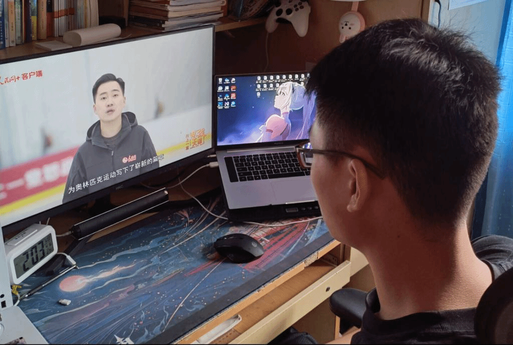 此次活动以线上观看视频的形式开展,同学们纷纷自主在寝室里登录观看。视频内容主要分为四个部分,分别由运动健儿讲述。第一部分由许海峰、杨倩、张长禄、周佳敏讲述“传承发扬”,中国运动健儿讲述着一个发展中大国的拼搏故事,以自信和自强标注了国家发展进步的新刻度。第二部分由巩立姣、肖若腾、吴静珏、黄雪辰讲述“奋斗拼搏”,中国体育代表团以永远向上、奋斗拼搏的精神风貌,在拼搏历程中砥砺前行,让青春在接续奋斗中绽放光芒。第三部分由孙一文,李发彬讲述“全民体育”,从在赛场上通过争金夺银来“提振士气”,到提升国民素质、增强公民意识,中国体育健儿引领的体育运动正在为国人带来实实在在的好处。第四部分由马龙、谌龙、茅经典讲述“精神能量”,奥运赛场上,一代代中国运动员接续成长,爱国主义、顽强拼搏、永不放弃,这些宝贵品质始终在传承发扬。