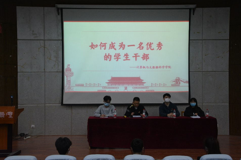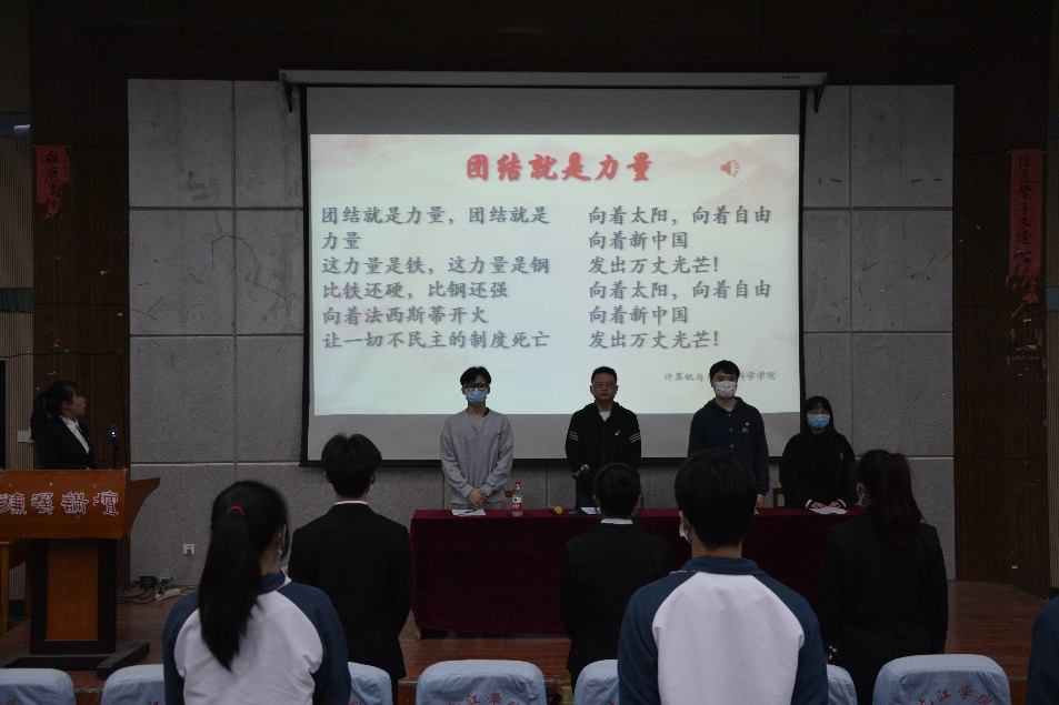 4月14日晚,计算机学院采取线上与线下结合的方式举行2021级骨干培训班开班仪式,主会场安排在文友楼报告厅,分会场为文友楼515、516。此次开班仪式出席人员有:计算机学院思政科副科长尹志刚、20届团委学生会干部、21级骨干班全体成员,活动由团委办公室主任孙文芳主持。