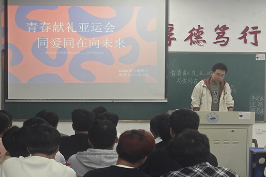 为激励计算机学院学子学习以爱国主义为核心的伟大民族精神,切实增强民族自信心和自豪感,传承亚运精神。10月25日,计算机学院各班级在其团支书的带领下,开展以“青春献礼亚运会,同爱同在向未来”为主题的团日活动。