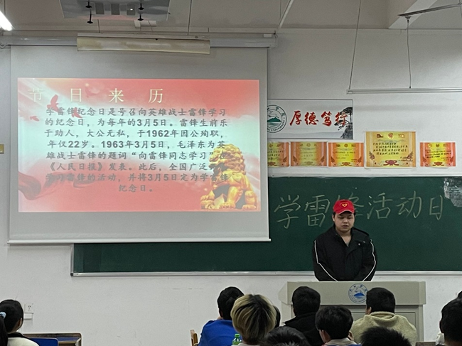活动开始,志愿者给大家播放了雷锋生平事迹的视频,让大家对雷锋有了初步的了解;随后,列举雷锋助人为乐的事迹并对雷锋精神进行深度剖析,号召大家“从小事做起,争做雷锋般好少年”,让雷锋精神代代相传;之后,带领同学们朗读其名言警句并集体宣誓,使大家更深刻的领会雷锋精神的精髓;活动最后,大家一同在文友楼前合影留念。