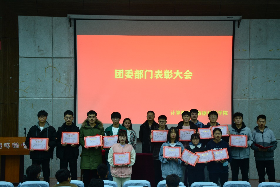 12月8日下午3点,计算机学院在文友楼报告厅召开团委部门表彰大会。计算机学院思政教育科副科长尹志刚,学生团委副书记黄琼瑶,2020届体育部副部长姜月及全体团委学生干部和干事参加,本次大会由姜月主持。