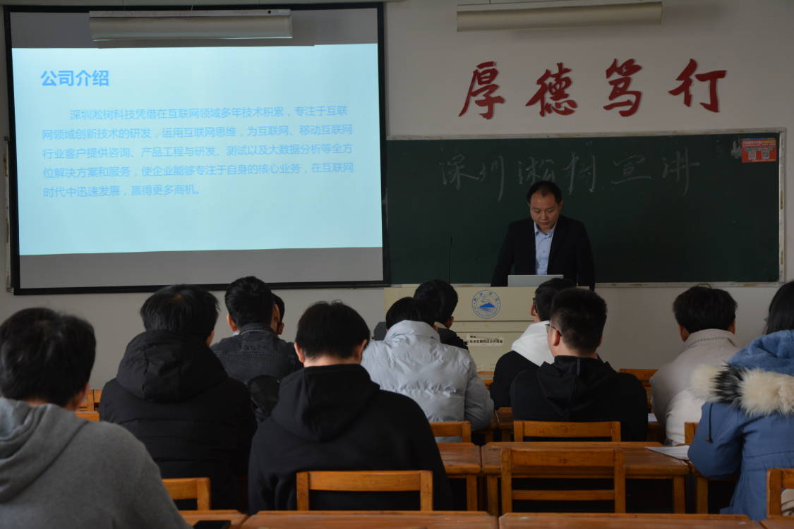 为缓解应届毕业生的就业压力,做好毕业生的就业工作,加强对应届毕业生就业的指导与帮助,12月1日下午两点,计算机学院于文友楼604举办了“深圳淞树技术有限公司”招聘宣讲会。宣讲会由公司代表闵涛涛主持,应届毕业生积极参与。
