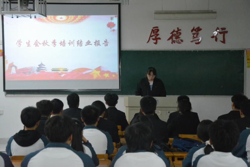 紧接着由学生会办公室主任廖誉文回顾和总结这些天以来所学的工作技巧和思想理论,他希望大家能够以全心全意为同学们服务为宗旨,各部门携手共进,相互配合,将接下来学院的各项工作越做越好。最后他宣布学生会秋季培训班正式结业。