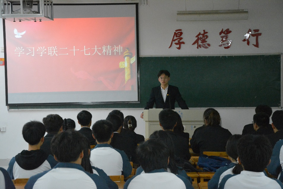 首先,段雅丽介绍了全国学联第二十七次代表大会的概况,并领读学习了习近平总书记贺信的重要精神、党中央致词的主要内容以及党中央传达的对全国学联学生会、广大青年学子的殷切希望。接着她从自身谈起:学生干部是从学生中来的,应该回到学生中去,要把全心全意为同学服务作为学生干部的宗旨。活动在热火朝天的交流学习中结束,同学们纷纷表示,要顺应建设社会主义现代化国家的时代潮流,争做有理想、有本领、有担当的时代新人。