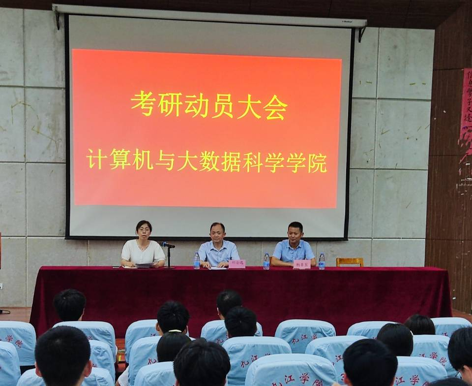 为激发同学们的考研热情,加深对考研形势的认识,加强学院学风建设,6月16日晚七点,计算机学院在文友楼一楼报告厅举办了考研动员大会。本次大会邀请了南昌航空大学软件学院教师杨丰玉,计算机学院院长邓安远、学生科副科长刘欣、教师代表徐利亚、18级全体班主任、辅导员及有考研意向的同学参加本次大会,会议由刘欣主持。