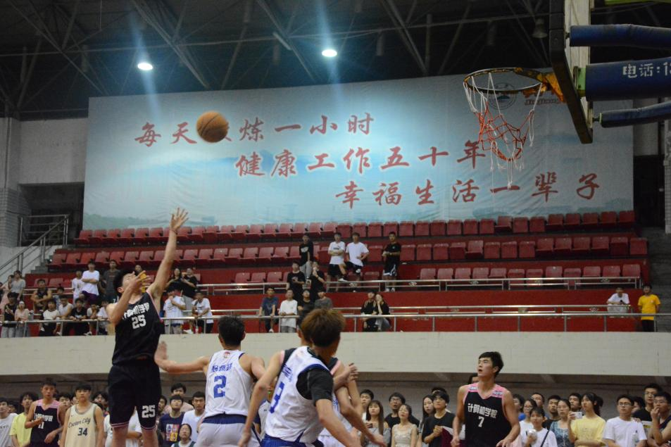 为了丰富大学生的课余生活,提高大学生的综合素质,增强团队精神和团体凝聚力,展现大学生进取向上的风貌。6月10日晚,计算机学院男篮队与经济学院男篮队在北区田径馆进行巅峰之战。计算机学院团委副书记胥杜鹃及众多学生前来观赛。
