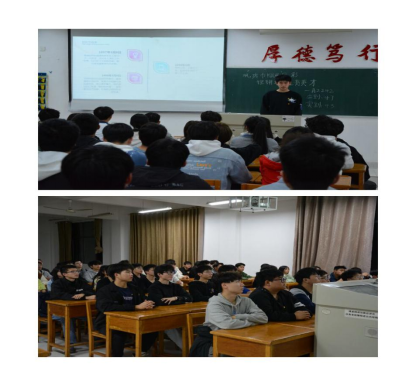 在退伍学生宣讲活动中,杨帅鹏讲述了自己在军旅的所见所感,生动地讲述了他有幸前往缅甸驻防边境的经历,同时通过退役前的照片帮助大家更直观的感受现实的军人生活,陈思源则以大事年表的方式,通过逻辑导图帮助大家明白当兵所要做的具体事务,卢沄松则仔细阐述了他当兵的经历和感想,并鼓励同学们积极参与到征兵工作中去。