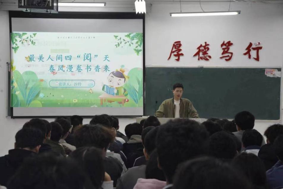 活动期间,各班团支书以PPT的形式向同学们展示4月24日阅读日的由来、目的及意义,随后让同学们轮流分享精选书籍,有的介绍经典文学,剖析人物与主题;有的分享科普读物,用生动语言揭示科学的奥秘。在分享中,倾听学习,共同感受书籍魅力。