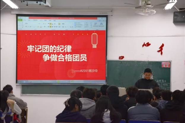 在这次团课中,团支书结合PPT向同学们介绍了团的内容:共青团史学习,团纪团规教育,团的优秀典型宣传,团员组织建设以及团员义务教育。接着,团支书组织了团史知识竞赛,同学们踊跃参与。最后,同学们纷纷表示要更进一步明确自己的目标,将爱国之情、报国之志转化为热爱学校、勤奋学习的实际行动。