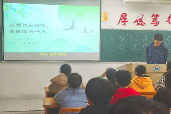 活动开始,团支书以视频的形式展示残疾群体生活现状,用直观数据与震撼图片,展现他们出行、就业、社交等方面面临的重重困难,让大学生们对残疾群体的艰辛感同身受。案例详实,既有励志残疾人士自学成才、逐梦赛场的动人故事,也有因无障碍设施缺失陷入困境的真实写照,引得同学们神情专注、陷入沉思。
