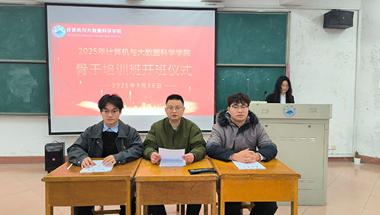 为深入学习贯彻全国两会精神,激励青年学子勇担时代使命,3月16日下午,计算机学院“学习两会精神,践行青春担当”青马工程大学生骨干培训班开班仪式在竞知楼阶梯教室六如期举行。计算机学院党建与思政教育科科长尹志刚、学生团委副书记徐向杨、钟烈彬,23届团委学生会干部,25届全体骨干班成员参加开班仪式,活动由团委办公室负责人陈琴主持。