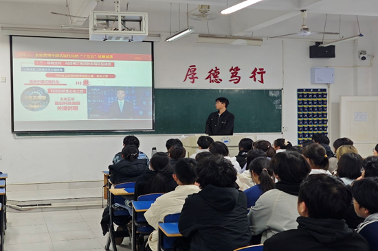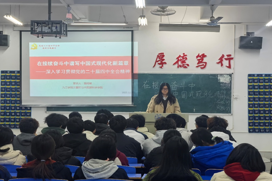 宣讲中,宣讲人以“深悟党的二十届四中全会精神实质,勇担‘十五五’奋进新使命”为题,紧扣全会核心要义,从全会的重大历史意义、“十四五”期间国家数字化建设取得的辉煌成就以及青年学子贯彻落实全会精神的实践路径等三个方面进行了深入浅出的讲解,用生动案例将抽象理论通俗化,让同学们听得入神、深受启发。他们勉励同学们要以全会精神为指引,强化责任担当意识,锤炼过硬专业本领,将个人青春奋斗融入中国式现代化建设的壮阔征程。