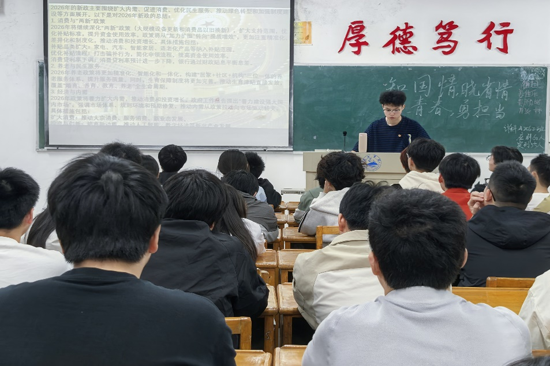 班会中,各班团支书结合图文资料、时事案例与地方发展成果,系统讲解我国新时代发展成就、国情国策,以及本地省情特色、建设规划与发展成果,让同学们全面认识国家强盛、地方发展的时代图景。通过ppt讲解,同学们围绕青年责任、青春担当展开热烈讨论,深刻感悟青年一代与国家、家乡发展同频共振的紧密联系,进一步明晰自身成长方向,坚定了奋进拼搏、不负韶华的信念。